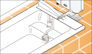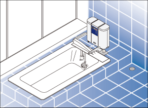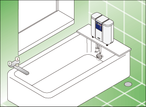 | 浴室の床面や棚面の空きスペースに設置できます。また、設置スペースがない場合でも、浴槽上の壁面側に専用人口ボード(別売部品)を固定し、この上に設置することも可能です。 | |||